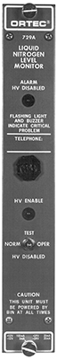 当与适当的探头一起使用时,由于杜瓦瓶中的液氮流失,监测器会在探测器变热之前很久就会发出警报。液氮的水平由杜瓦瓶中的热敏电阻探头检测。当液氮低于安全水平(约为杜瓦容量的1/4)时,警报响起,控制模块前面板上的红灯闪烁警告。