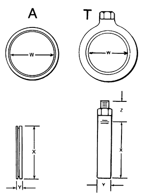 除非以适当的字母前缀另行指定,否则提供T安装座;4毫米孔为标准配置,可为特殊订单提供6毫米或8毫米孔或其他面积和深度。